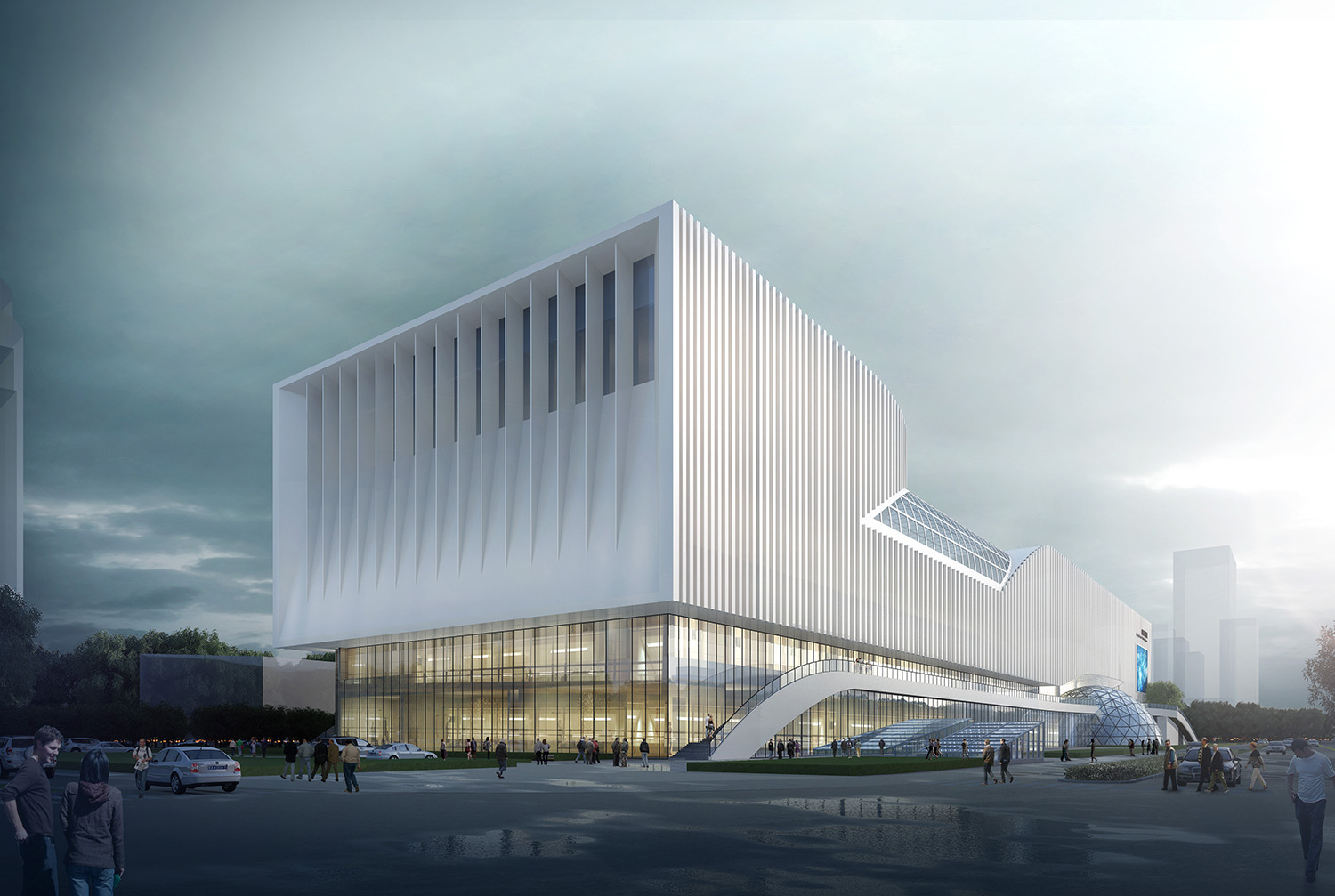 山東省科技館新館建筑將數(shù)學(xué)符號“∞”嵌入形體,意即"無限",隱喻隨著社會進(jìn)步,科技領(lǐng)域無限未知、無限發(fā)展并有無限可能。項目整個形體簡練、抽象、完整,既充盈著科學(xué)氣質(zhì),又流露出海岱文化中的山水意蘊(yùn),提出了"山海無限"的設(shè)計理念,含蓄表達(dá)了齊魯文化中的厚重與靈動,力求建筑與自然交融,科技與生活交融,使文化、自然、生活融為一體。