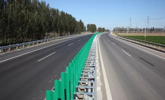 工程中央分隔帶安裝新型防眩網(wǎng),顏色亮麗、美觀大方,既隔離上下行車道,又防護(hù)夜間行駛車輛燈光,達(dá)到防眩和隔離的目的,為旅游大道增添了一道亮麗的風(fēng)景線。