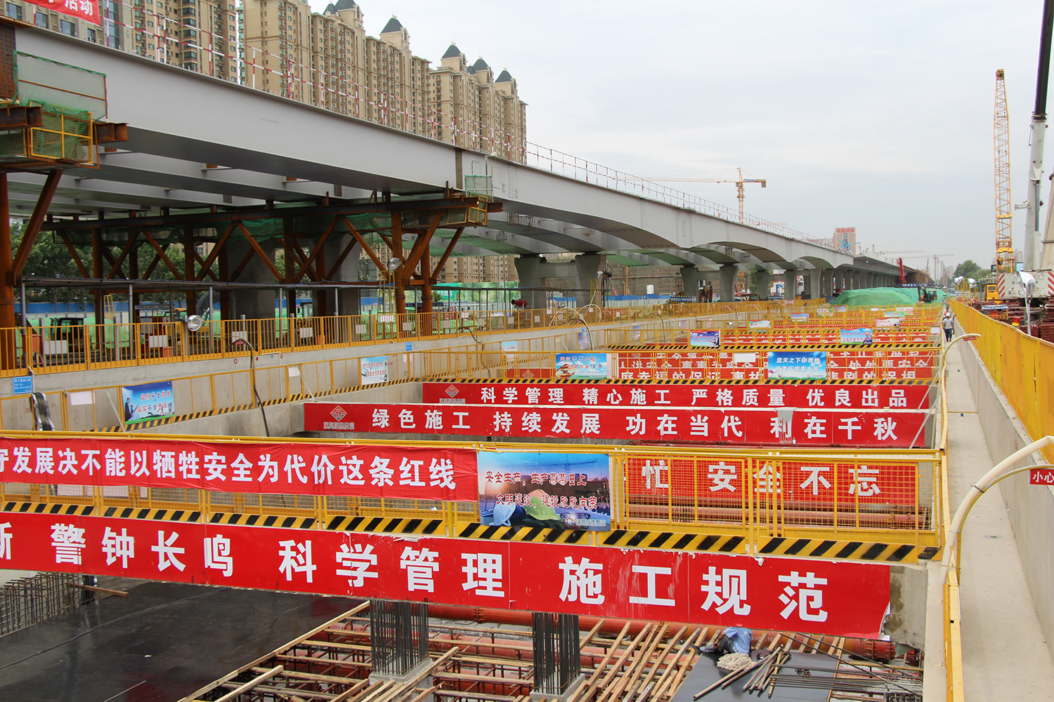 工程施工過程中,濟(jì)南城建集團(tuán)高度重視,科學(xué)組織,加大投入,精心施工,積極承擔(dān)社會(huì)責(zé)任。項(xiàng)目全體職工群策群力,攻堅(jiān)克難,拼搏進(jìn)取,日夜鏖戰(zhàn),進(jìn)度、質(zhì)量及安全各方面齊頭并進(jìn),扎實(shí)推進(jìn)施工建設(shè)。王舍人站成為R3線全線第一個(gè)完成車站封頂?shù)能囌?,左右線盾構(gòu)均比節(jié)點(diǎn)目標(biāo)提前一個(gè)月完成始發(fā),嚴(yán)格按照“六個(gè)百分百”、“四個(gè)一律”要求開展工地文明施工,多次引發(fā)觀摩學(xué)習(xí)熱潮,項(xiàng)目部被濟(jì)南軌道交通集團(tuán)有限公司授予“2017年度優(yōu)秀施工單位”,并多次取得建設(shè)單位考核佳績和通報(bào)表揚(yáng),工程建設(shè)得到各級領(lǐng)導(dǎo)和建設(shè)單位的高度認(rèn)可。