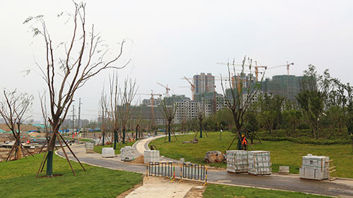 目前,園林一期A區(qū)已經(jīng)基本建設(shè)完畢,進(jìn)入收尾階段。B區(qū)正在緊張建設(shè)中,作為定位人與自然和諧相處的城市濱水區(qū),現(xiàn)場的林蔭廣場、游船碼頭、兒童歡樂天地、親水沙灘、臺(tái)地廣場、音樂噴泉等配套服務(wù)設(shè)施已現(xiàn)雛形,預(yù)計(jì)6月底主體建設(shè)完工。C區(qū)位于華山正南方,處于整個(gè)濕地公園的中軸線和橋梁連接部位,定位為歷史文化區(qū),也是整個(gè)濕地公園的主入口區(qū),為三個(gè)區(qū)域中占地面積最大的區(qū)域,近期也將啟動(dòng)建設(shè)工作。