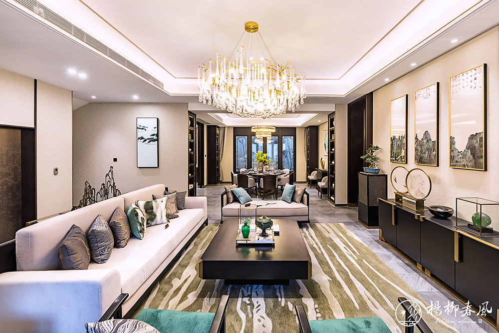 另一套大戶型樣板房采用新中式風格,以儒家思想為依托,通過大理石、金屬銅、木材的有機結(jié)合,體現(xiàn)主人的穩(wěn)重、尊貴和優(yōu)雅。約110㎡的大面積庭院,演繹著四季不落幕的錦繡風光;挑高約5.7米的地下空間,讓格調(diào)生活隨心定制。整套樣板房抒寫著文雅靈動的東方氣韻,展現(xiàn)了“中正和雅”的國風意境。