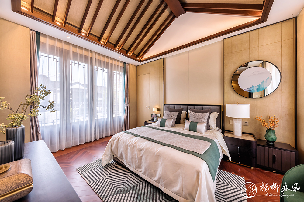 此次對外開放的樣板房一種為新亞洲風格,以“禮”、“樂”為創(chuàng)作靈感,巧妙借用了中式園林框景的手法來演繹時尚的氣質(zhì),將室外園林造景與室內(nèi)裝飾相結(jié)合,是古典與現(xiàn)代的一次碰撞。在空間布局上,多處采用中軸對稱的傳統(tǒng)中式手法,大氣之中也展現(xiàn)著家族禮序。南北雙庭院、連接私享露臺的主臥套房、挑空設計的大面積地下空間,處處彰顯著大家風范,在古樸的韻味中體現(xiàn)出一份現(xiàn)代的質(zhì)感。