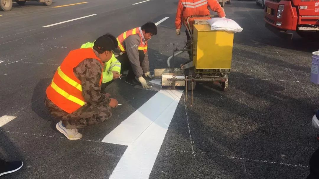 雙組份高亮標(biāo)線涂料的主要原料是 “甲基丙烯酸甲酯”(英文縮寫MMA),此次路面標(biāo)線施劃的標(biāo)線涂料全部采用MMA雙組份,具體施工內(nèi)容為MMA雙組份標(biāo)線(刮涂)6100㎡、MMA雙組份標(biāo)線(甩涂)4300㎡、MMA雙組份標(biāo)線(噴涂)2200㎡。