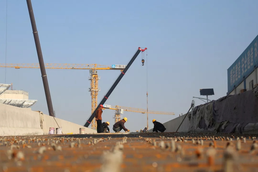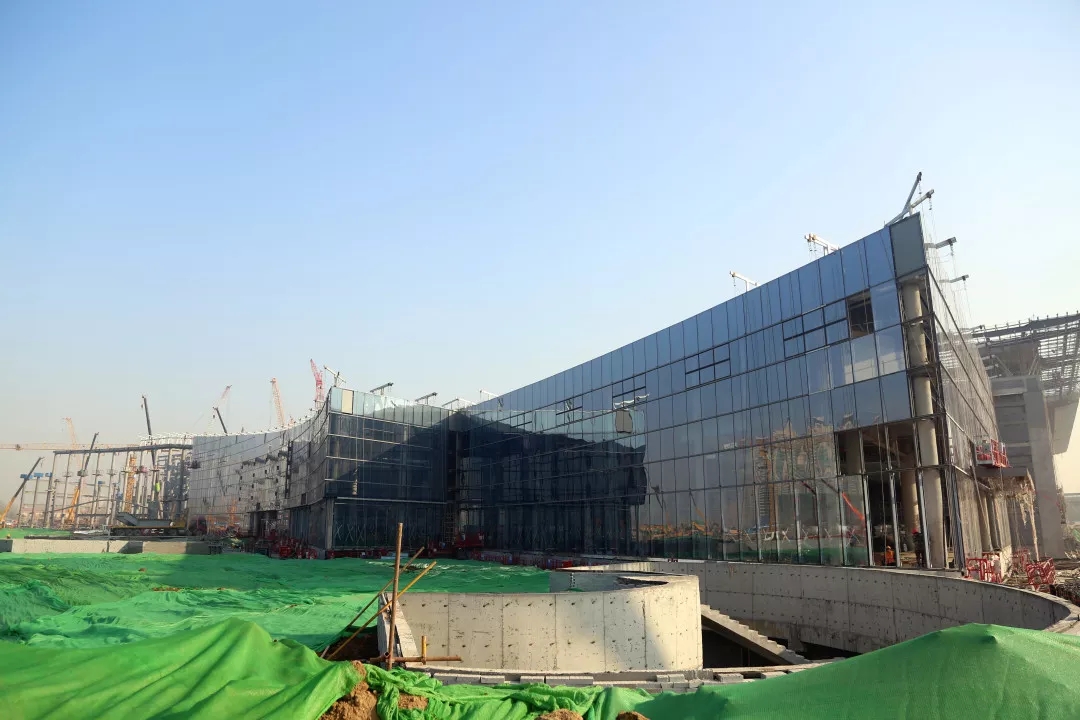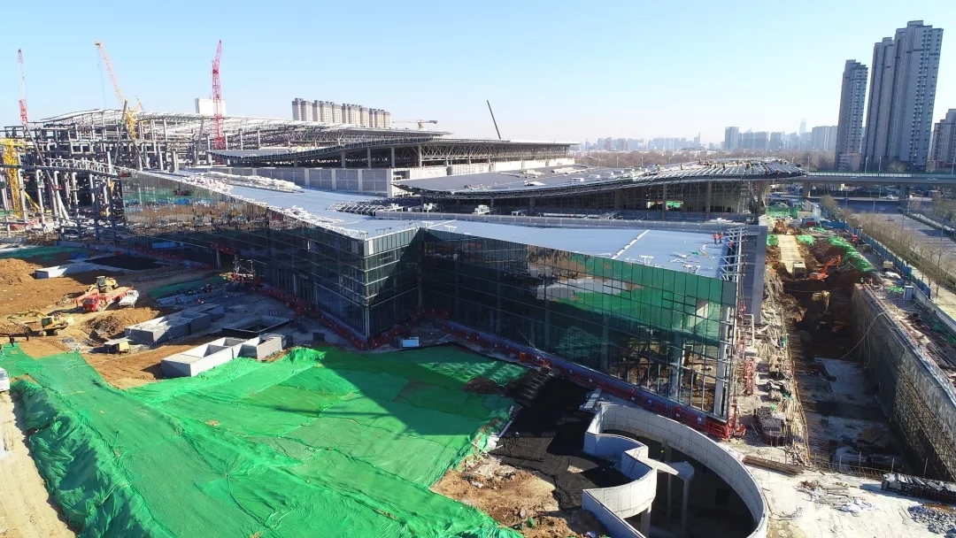 目前,展館區(qū)域已完成5個(gè)展館及4、5號(hào)館共享大廳、西輔房區(qū)域主體鋼結(jié)構(gòu)與二次結(jié)構(gòu)施工,正在進(jìn)行裝飾安裝工程。地下車庫已完成除軌道M1線預(yù)埋段區(qū)域主體結(jié)構(gòu)施工,正在進(jìn)行二次結(jié)構(gòu)、裝飾安裝、室外回填及剩余地下車庫主體結(jié)構(gòu)工程施工。