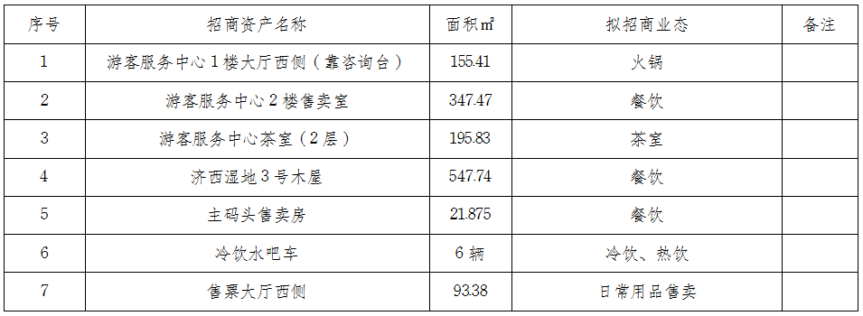 山東濟(jì)西國家濕地開園在即,為豐富園區(qū)業(yè)態(tài),現(xiàn)就園區(qū)可經(jīng)營性資產(chǎn)進(jìn)行公開招商,資產(chǎn)面積及業(yè)態(tài)規(guī)劃如下: