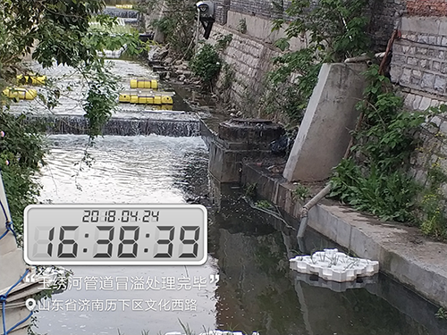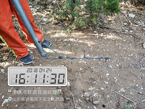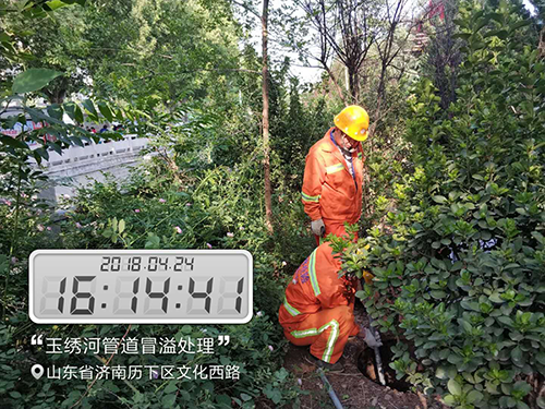 2018年4月24日濟南市政公用資產(chǎn)管理運營有限公司接到濟南市排水管理服務(wù)中心通知,在玉繡河下游發(fā)現(xiàn)一處檢查井冒溢,污水冒溢至玉繡河內(nèi)直接造成河道污染,接到通知后,公司立即安排應(yīng)急搶險小組前往現(xiàn)場,經(jīng)過現(xiàn)場排查該管段位于玉繡河河床內(nèi),不屬于我公司管轄范圍,按照市城鄉(xiāng)水務(wù)局“2018清網(wǎng)行動”精神指示,本著有險情先搶險的原則,公司對該冒溢點立即進行搶修,保證管網(wǎng)正常運行。