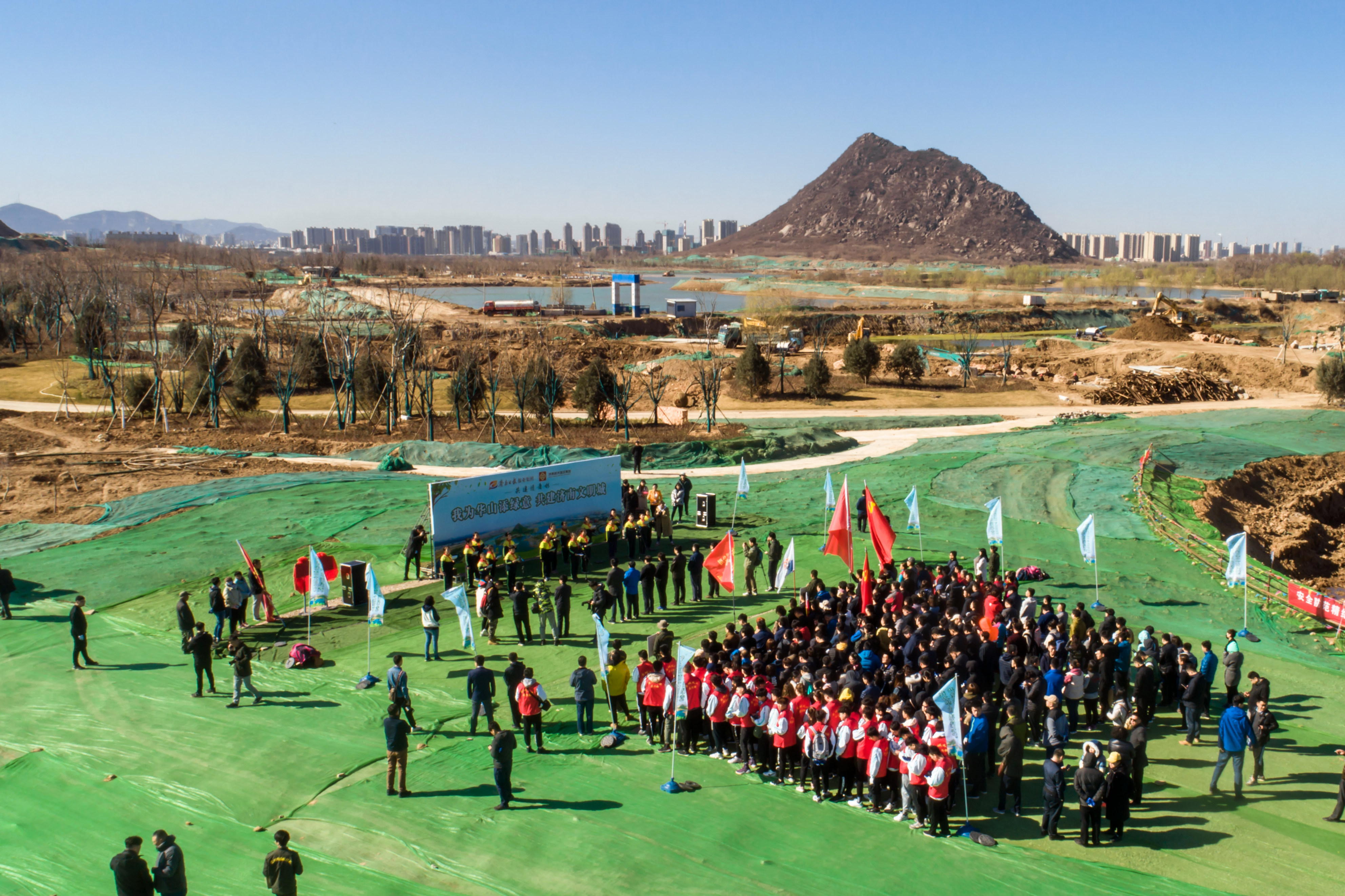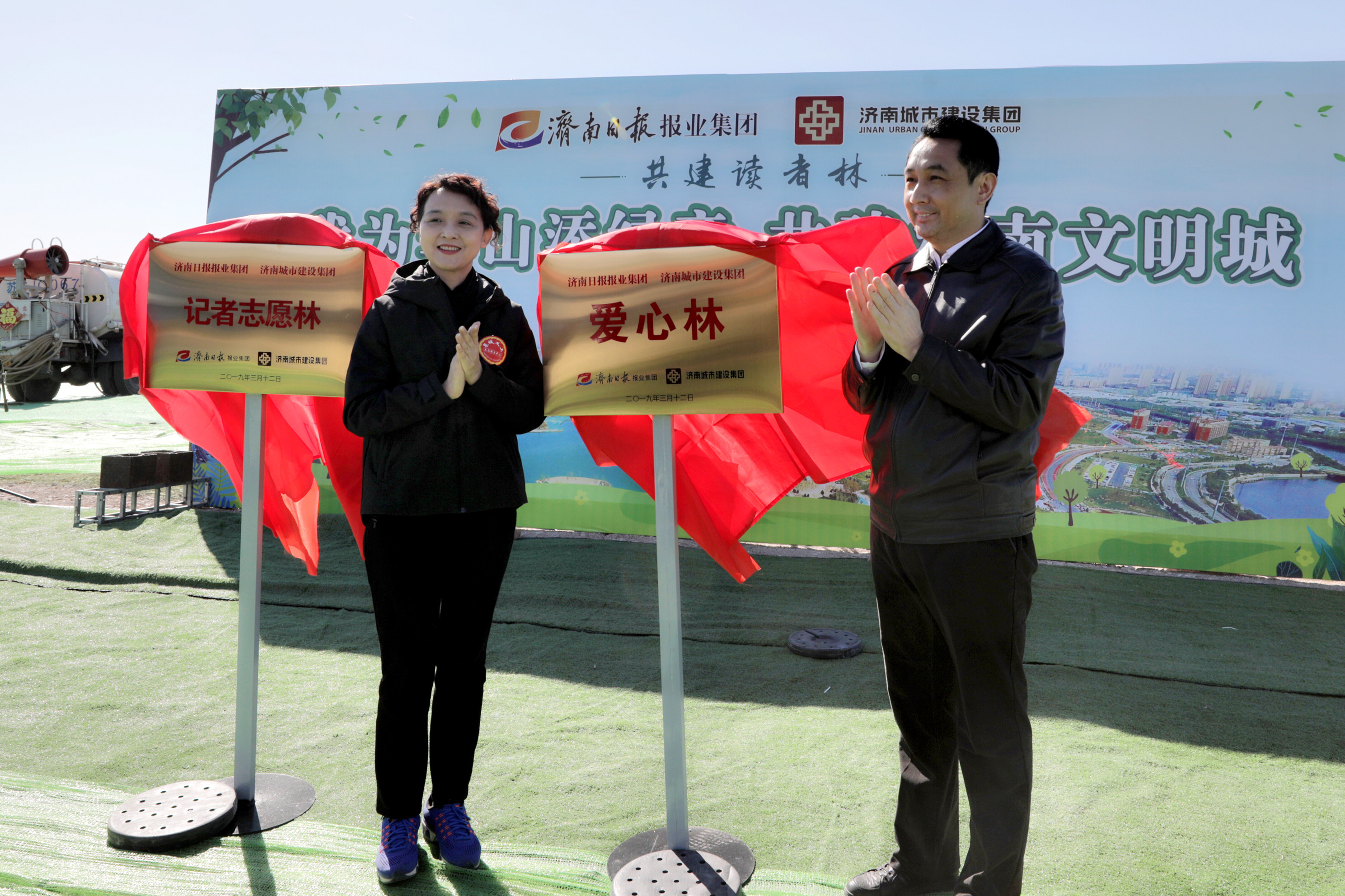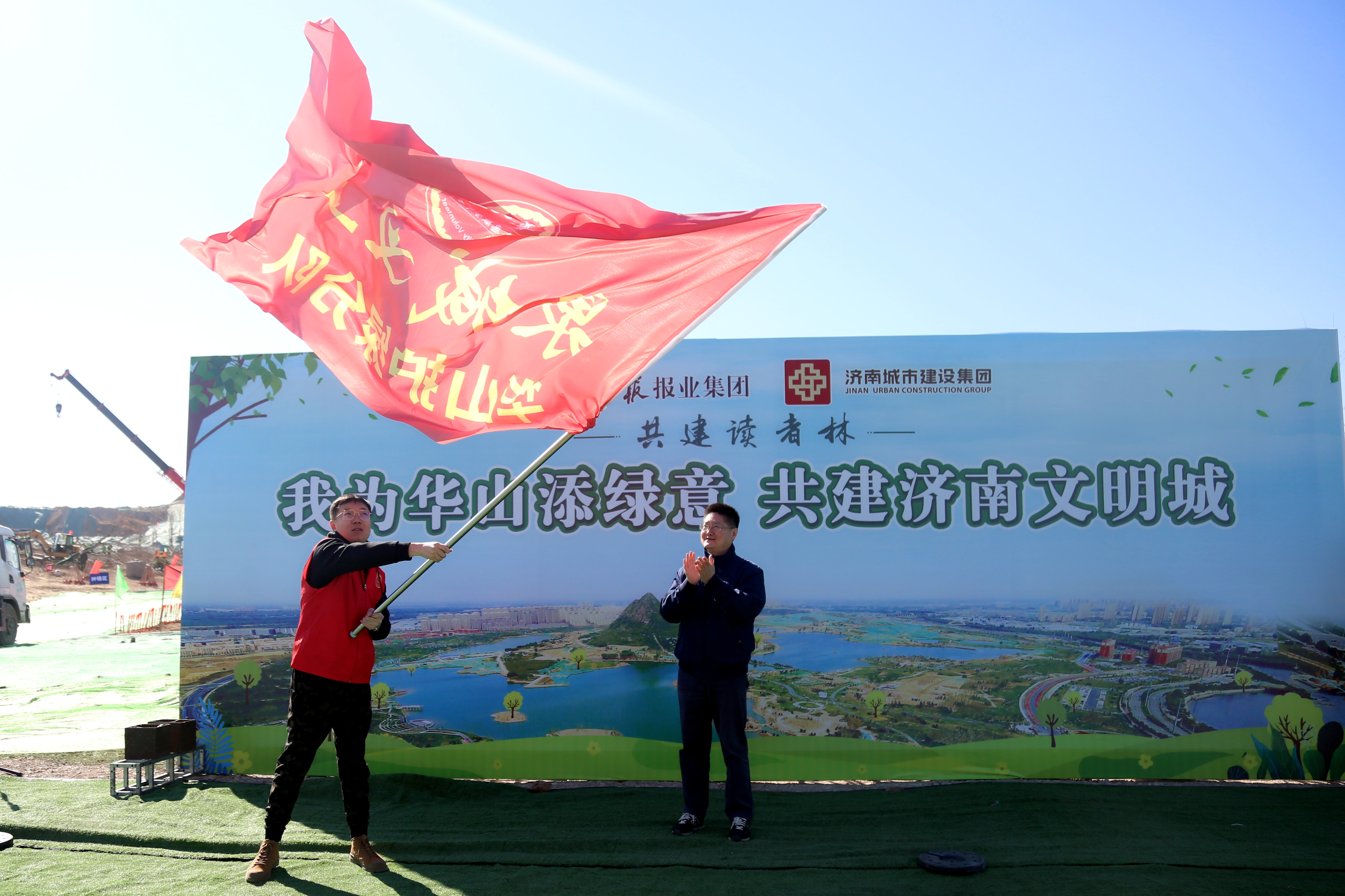 在華山歷史文化濕地公園內(nèi),來(lái)自雙方單位的干部職工、泉城義工、小記者代表等共計(jì)近500人春種華山,并在華山設(shè)立“記者志愿林”和“愛(ài)心林”。濟(jì)南城市建設(shè)集團(tuán)黨委書(shū)記、董事長(zhǎng)李國(guó)祥,濟(jì)南日?qǐng)?bào)報(bào)業(yè)集團(tuán)董事長(zhǎng)、黨委書(shū)記、濟(jì)南日?qǐng)?bào)社社長(zhǎng)馬利共同為“記者志愿林”和“愛(ài)心林”揭牌。