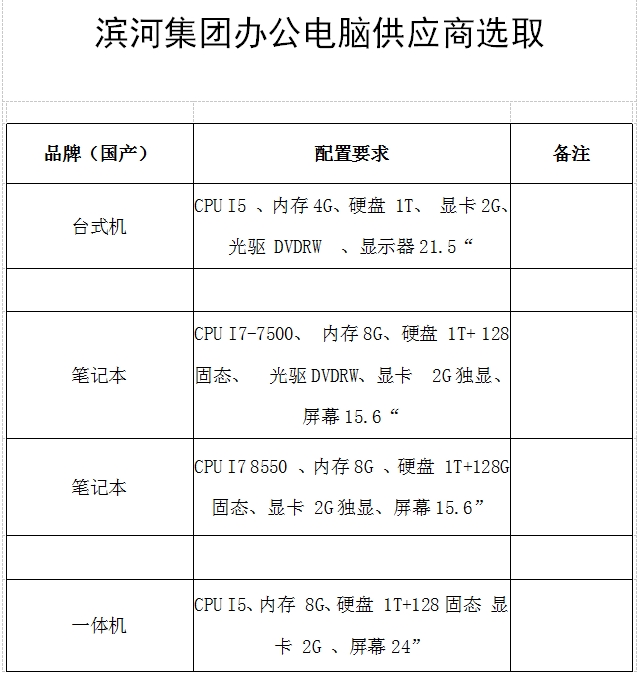 現(xiàn)對(duì)集團(tuán)辦公電腦采購(gòu)選取供應(yīng)商進(jìn)行詢價(jià),有關(guān)事項(xiàng)通知如下,歡迎各單位參加報(bào)價(jià)。