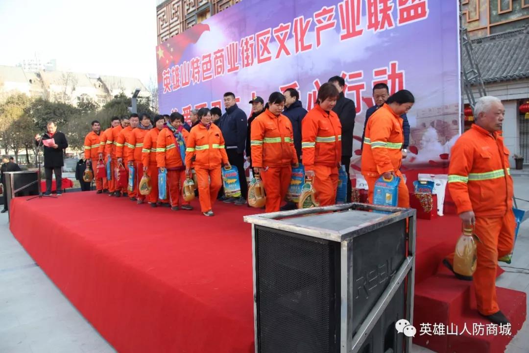 2019年2月1日,農(nóng)歷臘月二十七,濟南市英雄山人防工程管理有限責(zé)任公司作為英雄山特色商業(yè)街區(qū)文化產(chǎn)業(yè)聯(lián)盟成員單位,與多家聯(lián)盟單位聯(lián)合發(fā)起了中國濟南特色街區(qū)聯(lián)盟“關(guān)愛環(huán)衛(wèi)工人,愛心行動”主題公益活動,為服務(wù)于街區(qū)的環(huán)衛(wèi)工人們獻上節(jié)日的祝福,并送上了個人捐款與農(nóng)副產(chǎn)品。市中區(qū)副區(qū)長潘建軍、四里村街道辦事主任崔珉受邀參加了本次活動。