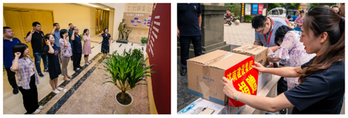 在濱湖社區(qū)宗旨教育展廳,全體黨員和積極分子在審計與監(jiān)事會黨支部書記祁詠梅的帶領(lǐng)下重溫了入黨誓詞。集團(tuán)黨委委員、總會計師范天云帶領(lǐng)黨員們?yōu)樯鐓^(qū)捐贈了礦泉水、花露水、洗手液等防暑物資。濟(jì)北街道、濱湖社區(qū)及集團(tuán)“四進(jìn)”工作組有關(guān)同志陪同參加了此次活動。
