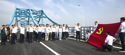 在活動(dòng)中,建設(shè)集團(tuán)資產(chǎn)管理部黨支部和市政資產(chǎn)運(yùn)營(yíng)公司黨委共40余名黨員站在濟(jì)樂(lè)高速南延線公路現(xiàn)場(chǎng)觀摩了濟(jì)樂(lè)高速南延工程的建設(shè)情況,并面對(duì)黨旗重溫入黨誓詞。黨員們聲音鏗鏘有力,表達(dá)著每一位黨員在未來(lái)的道路上將會(huì)更加堅(jiān)定地?fù)碜o(hù)黨的領(lǐng)導(dǎo),努力踐行共產(chǎn)黨人的初心和使命。