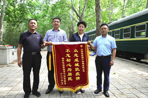 為感謝資產(chǎn)公司在疫情防控工作中對濟(jì)水上苑社區(qū)的大力幫助,社區(qū)書記葛榮劍向黨總支書記陳向勤贈送了錦旗。這面寫著“眾志成城抗疫情、不忘初心為居民”的錦旗,鞭策資產(chǎn)公司繼續(xù)踐行為民服務(wù)、守護(hù)國有資產(chǎn)的工作宗旨。