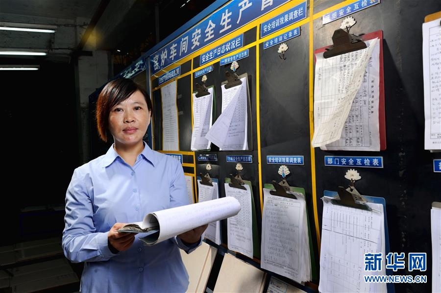 首批農(nóng)民工全國人大代表之一胡小燕在曾經(jīng)工作過的陶瓷廠檢查職工權(quán)益保護工作(2013年11月5日攝)。新華社記者劉大偉攝