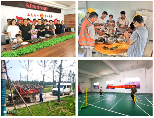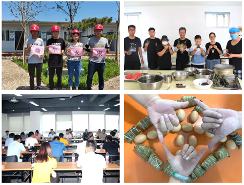 工程四部分別組織所屬黃河防護(hù)林提升工程項(xiàng)目部、先行區(qū)市政道路項(xiàng)目部、濟(jì)南四建集團(tuán)新舊動(dòng)能轉(zhuǎn)換先行區(qū)孫耿街道七村整合安置區(qū)(一期)工程項(xiàng)目部及各參建單位開展以“我們的節(jié)日•端午”為主題的端午節(jié)包粽子、掛艾葉、衛(wèi)生清理等活動(dòng)。大家一邊包著粽子,一邊交流各自家鄉(xiāng)的端午習(xí)俗,感受著“家”般的溫暖。