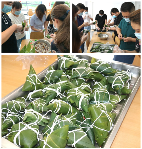 公司黨支部開展“情濃五月天,歡樂度端午”主題黨日活動(dòng),浸泡、清洗、分裝,大家按照各自分工立即行動(dòng)起來,卷葉、裝米、壓實(shí)、捆扎一氣呵成,一個(gè)個(gè)造型各異的粽子就完成了。經(jīng)過近三個(gè)小時(shí)的煮制,大家親手制作的粽子新鮮出爐,分發(fā)給當(dāng)日?qǐng)?jiān)守崗位的工作人員,“粽情”傳遞節(jié)日的問候,在集體的溫暖中共度過中華傳統(tǒng)節(jié)日。