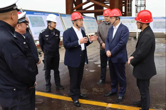在主橋施工現(xiàn)場,工作組認真聽取了齊魯黃河大橋工程建設(shè)等有關(guān)情況的匯報,并詳細了解了主橋梁板架設(shè)、施工中存在的問題難題和建設(shè)工期安排。曹鳳陽表示,此次“萬警進萬企”活動緊緊圍繞市委政法委部署要求,堅持“主動聯(lián)系企業(yè)、主動服務企業(yè)、主動保護企業(yè)”原則,及時了解企業(yè)需求,響應企業(yè)訴求,努力為企業(yè)辦實事、做好事、解難事,建立常態(tài)化聯(lián)系溝通機制,助力企業(yè)健康發(fā)展、高質(zhì)量發(fā)展。他指出,齊魯黃河大橋的順利建成將極大推動槐蔭和齊河兩地旅游業(yè)和經(jīng)濟社會互動發(fā)展,為建設(shè)“大強美富通”現(xiàn)代化國際大都市作出新的更大貢獻。