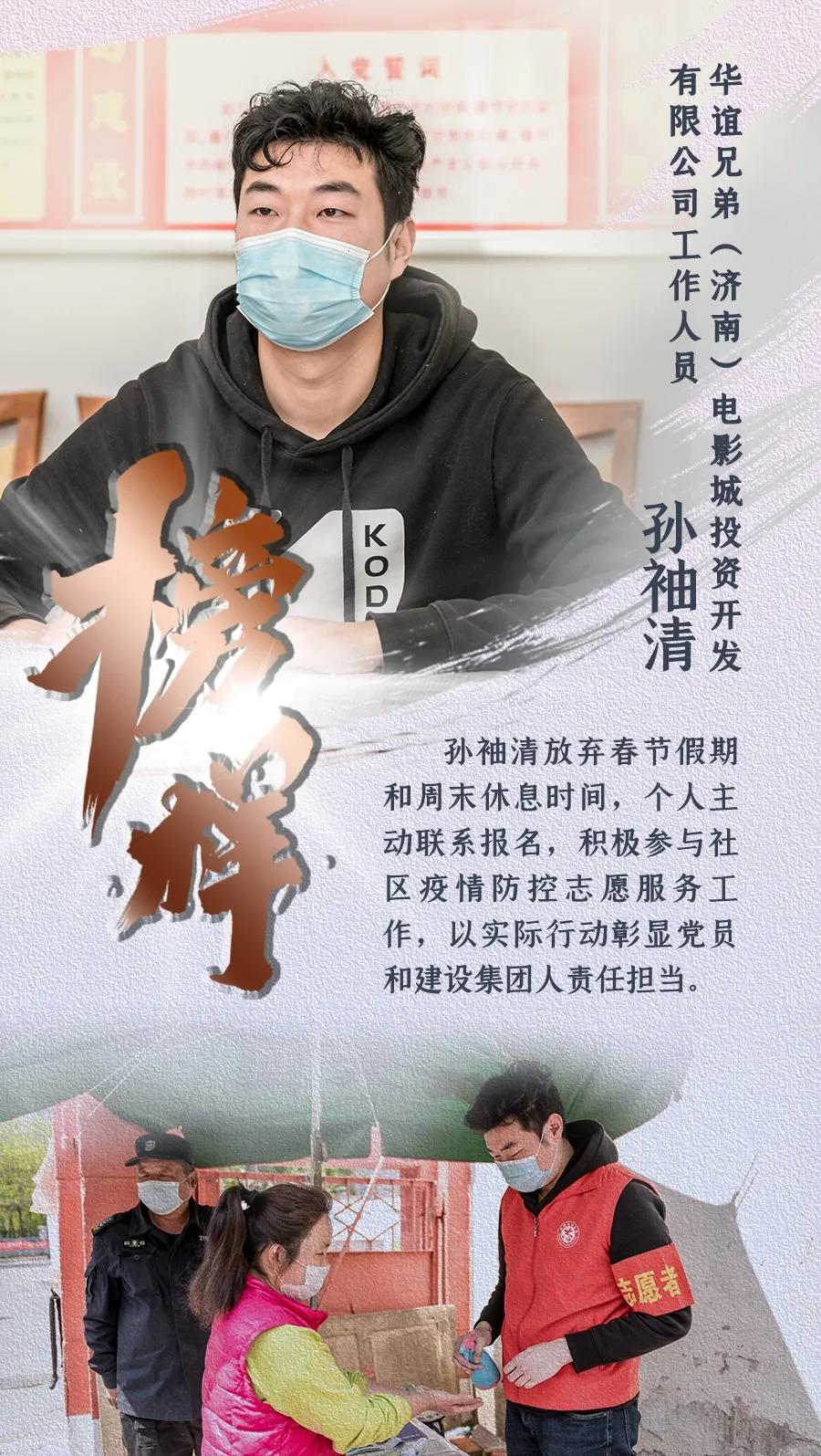 新型冠狀病毒肺炎疫情發(fā)生以來,濟南城市建設(shè)集團認真貫徹落實中央、省、市關(guān)于疫情防控和復工復產(chǎn)的決策部署,上下一心、眾志成城,全體干部職工恪盡職守、扎根一線,全員全力投入到疫情防控阻擊戰(zhàn)中。期間,涌現(xiàn)出了眾多先進典型和感人故事,用實際行動詮釋了建設(shè)集團人的精神風貌和責任擔當。我們在集團宣傳平臺《榜樣》欄目,推出系列人物報道,挖掘宣傳一線典型,提振士氣、凝聚力量,激勵我們繼續(xù)前行,堅決打贏疫情防控的人民戰(zhàn)爭、總體戰(zhàn)、阻擊戰(zhàn)。