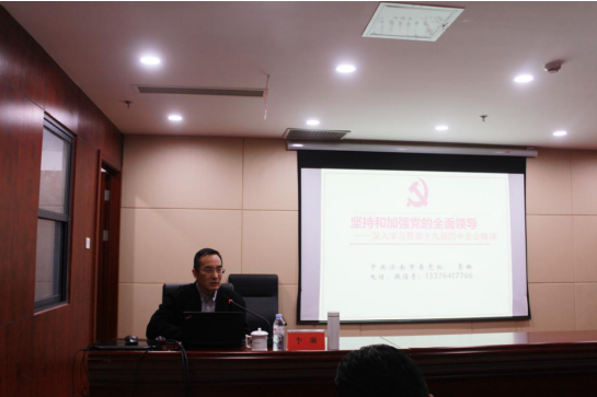 李琳教授就《堅(jiān)持和加強(qiáng)黨的全面領(lǐng)導(dǎo)---深入學(xué)習(xí)貫徹黨的十九屆四中全會(huì)精神》進(jìn)行了系統(tǒng)闡述和深入解讀。從理論依據(jù)、現(xiàn)實(shí)依據(jù)方面,為我們解讀了堅(jiān)持和加強(qiáng)黨的全面領(lǐng)導(dǎo)的必然性。通過如何處理好四種關(guān)系解讀了堅(jiān)持和加強(qiáng)黨的全面領(lǐng)導(dǎo)的豐富內(nèi)涵,解讀了中國共產(chǎn)黨長(zhǎng)期執(zhí)政的合法性。