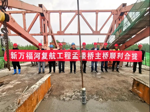4月19日,隨著最后一方混凝土澆筑完成,經(jīng)過10個月的建設(shè),濟(jì)寧金鄉(xiāng)新萬福河復(fù)航工程孟樓橋懸臂現(xiàn)澆箱梁順利合攏。