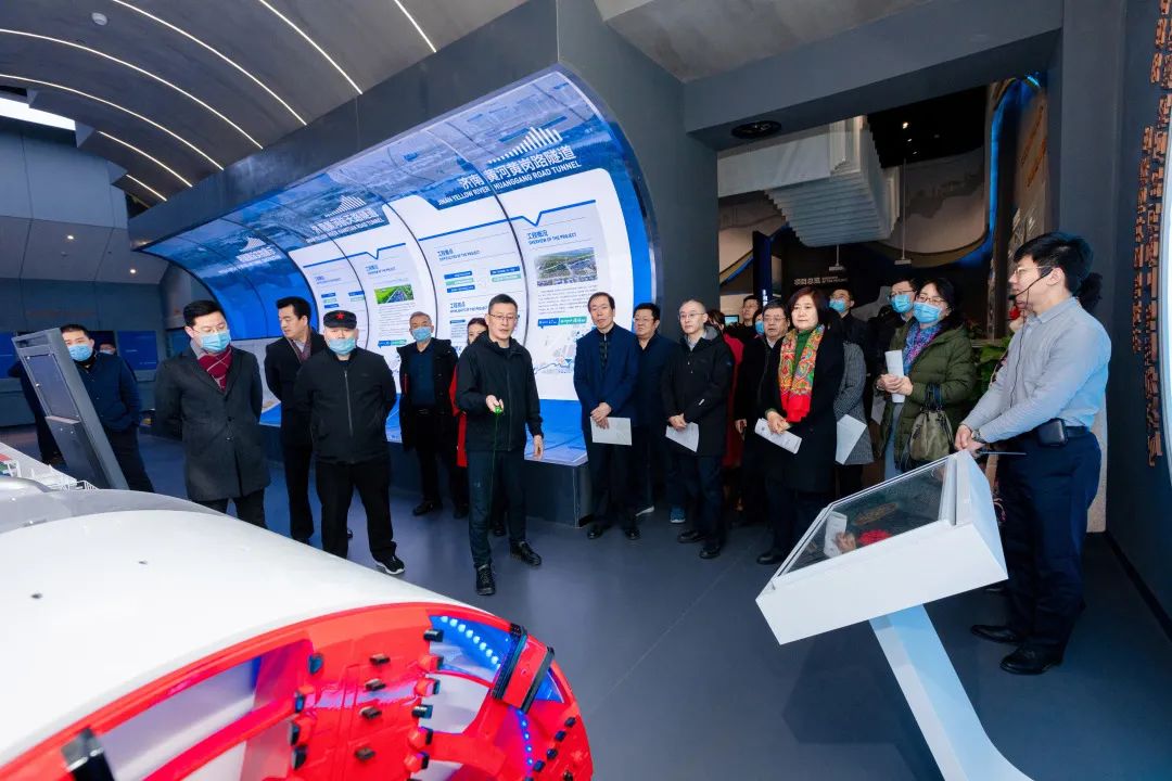調(diào)研組一行實地察看了濟(jì)南黃河濟(jì)濼路隧道項目現(xiàn)場及“濟(jì)南城市建設(shè)集團(tuán)四橋四隧跨黃通道項目展廳”,詳細(xì)了解了北跨橋隧項目的建設(shè)及運營情況,共同回顧了濟(jì)南黃河發(fā)展的歷史背景、發(fā)展脈絡(luò)以及新時代宏偉篇章。