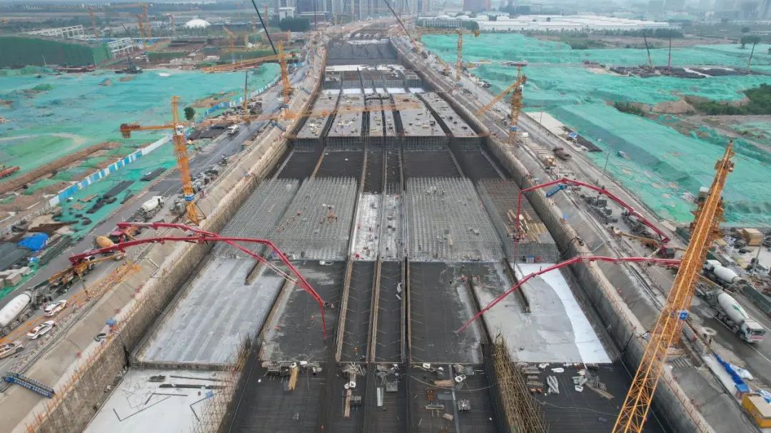 工程開工建設(shè)以來,五個工區(qū)同步平行施工,24小時飽和施工,加大人力、機械投入,高峰期間三千余人同步會戰(zhàn),保障工程有序推進。施工過程中,在嚴格執(zhí)行環(huán)保標準的前提下,利用兩個月的時間完成160萬立方米的通道基坑土方開挖,相當于開挖兩個大明湖的方量。完成鋼筋制作安裝8.6萬噸,澆筑混凝土43.9萬立方米,地面道路水穩(wěn)18萬噸,瀝青12萬噸。