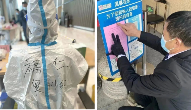 當(dāng)柏然公館項(xiàng)目收到業(yè)主需要居家隔離的通知,福仁服務(wù)人員身穿防護(hù)服,上門(mén)耐心溝通安撫,“遇到事情需要代辦的,東西需要代買的,隨時(shí)打電話找我們!我們24小時(shí)為你開(kāi)機(jī)!”