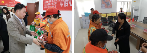活動中,雙方黨支部黨員對“三八”國際婦女節(jié)仍堅守一線工作崗位的環(huán)衛(wèi)女職工表示崇高的敬意,并對他們無私奉獻、任勞任怨的品質(zhì)表示贊許,同時向環(huán)衛(wèi)職工送上慰問品。