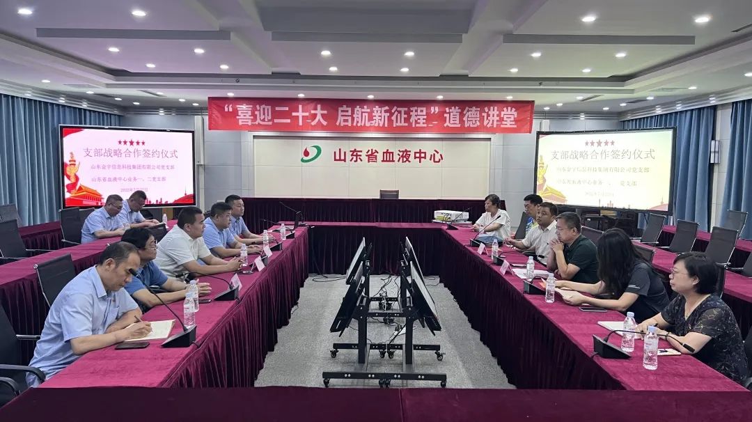 7月22日,山東金宇信息科技集團黨支部與山東省血液中心業(yè)務(wù)一、二黨支部共建合作簽約儀式在省血液中心舉行。雙方有關(guān)負(fù)責(zé)同志和黨員干部代表出席了協(xié)議簽訂活動。