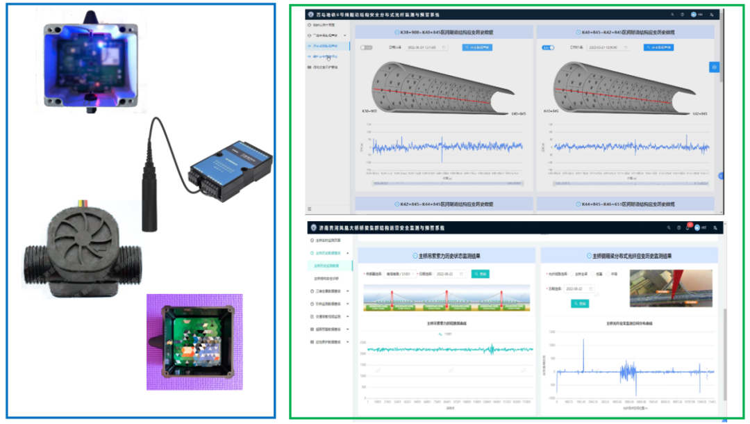 在濟(jì)南地鐵3號(hào)線,針對(duì)復(fù)雜環(huán)境下地鐵隧道監(jiān)測(cè)與狀態(tài)診斷的難題,項(xiàng)目建立了基于全分布式光纖測(cè)技術(shù)的長(zhǎng)距離(20千米)地鐵隧道結(jié)構(gòu)運(yùn)營(yíng)安全監(jiān)測(cè)與預(yù)警系統(tǒng),打破了傳統(tǒng)點(diǎn)式傳感技術(shù)的局限性,實(shí)現(xiàn)對(duì)地下軌道交通網(wǎng)絡(luò)整體運(yùn)營(yíng)狀態(tài)的安全監(jiān)測(cè)。