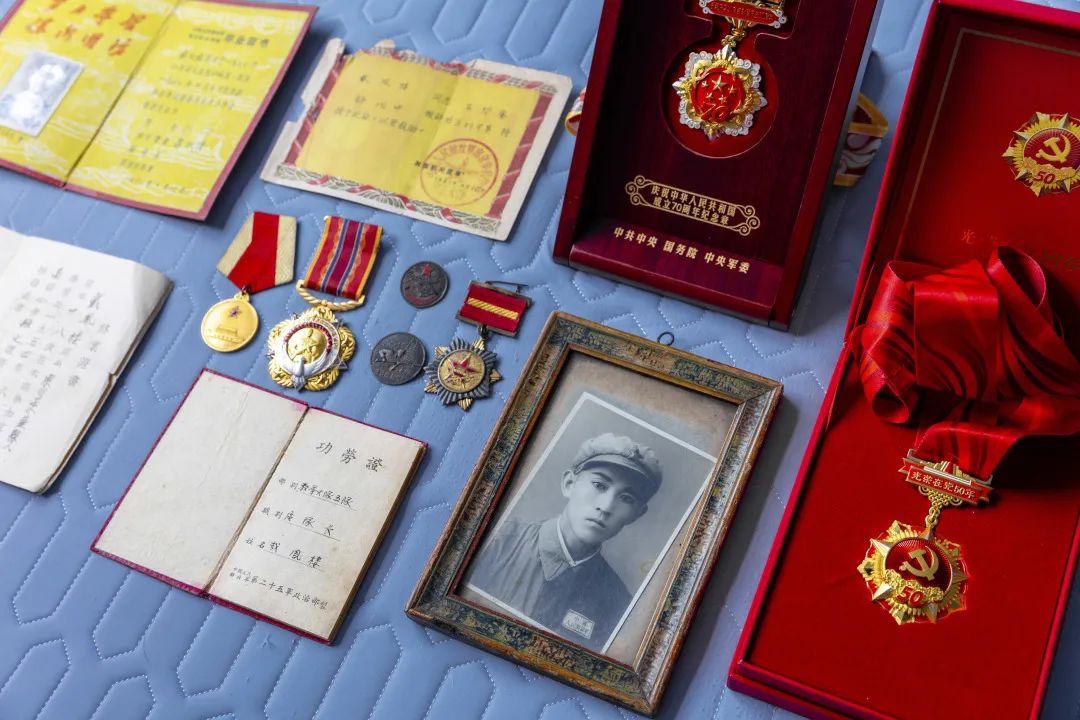 “我記得小時(shí)候,爺爺會(huì)在電視上播放戰(zhàn)爭(zhēng)影視片時(shí),偶爾說(shuō)起他也打過(guò)那些仗,我那時(shí)不懂事,就老說(shuō)他在吹牛,到高中時(shí),我在爺爺家住過(guò)一個(gè)月,他把所有勛章拿出來(lái)讓我看,我當(dāng)時(shí)都震驚了,尤其是渡江戰(zhàn)役那枚勛章,我只有在歷史試卷上見(jiàn)過(guò),沒(méi)想到爺爺就有”,戴越說(shuō):“當(dāng)時(shí)我瞬間對(duì)爺爺充滿了敬佩,自己也很自豪驕傲,現(xiàn)在回想起來(lái),那時(shí)應(yīng)該是爺爺覺(jué)得我長(zhǎng)大了,以此激勵(lì)我。”