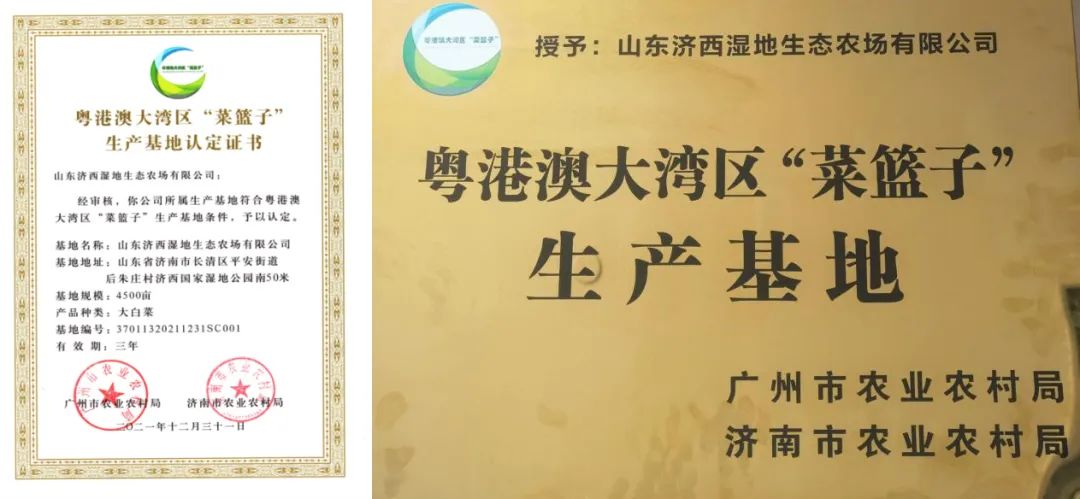 近日,山東濟西濕地生態(tài)農(nóng)場有限公司通過粵港澳大灣區(qū)“菜籃子”生產(chǎn)基地認定,并被授予認定證書和基地牌匾,標志著濟西農(nóng)業(yè)高質(zhì)量的特色農(nóng)產(chǎn)品獲得“通行證”進入粵港澳大灣區(qū)的“交易大廳”,為公司農(nóng)產(chǎn)品開拓粵港澳市場奠定了基礎。