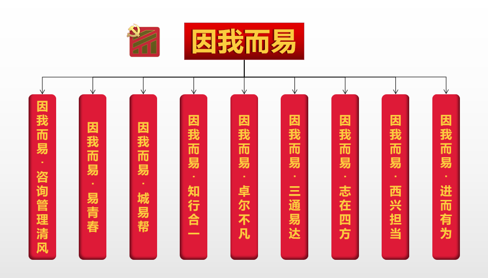 近年來,易方達(dá)公司按照建設(shè)集團(tuán)黨委“1+N+n”品牌創(chuàng)建總體布局,把黨建品牌與企業(yè)文化,項(xiàng)目管理、監(jiān)理、全過程工程咨詢主業(yè),行業(yè)數(shù)字化轉(zhuǎn)型等深度融合,形成“因我而易”黨建品牌為“1”,以點(diǎn)帶面,充分發(fā)揮自身優(yōu)勢(shì),集中力量,挖掘資源,先后培育出“因我而易·咨詢管理清風(fēng)”廉潔文化品牌,“因我而易·易青春”團(tuán)委品牌,“因我而易·城易幫”“因我而易·志在四方”等支部品牌,形成亮點(diǎn)紛呈、百花齊放的“1+9”的黨建品牌矩陣。