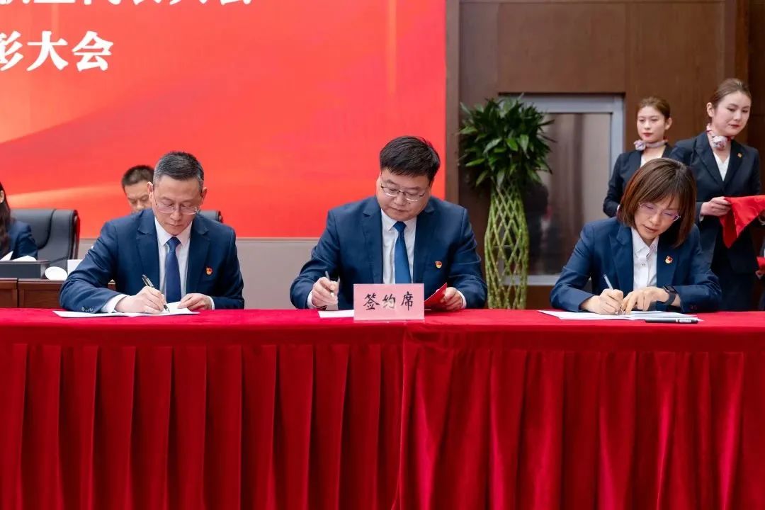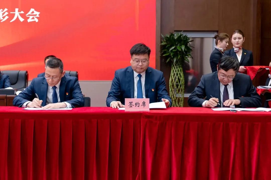 會(huì)上集團(tuán)黨委書(shū)記、董事長(zhǎng)史海成,黨委副書(shū)記、總經(jīng)理許為民,與部室、子公司主要負(fù)責(zé)人代表,簽訂2023年度《目標(biāo)責(zé)任書(shū)》和《全面從嚴(yán)治黨及黨風(fēng)廉政建設(shè)責(zé)任書(shū)》;集團(tuán)副總經(jīng)理安玉坤同志宣讀表彰決定,并對(duì)獲獎(jiǎng)集體和個(gè)人代表進(jìn)行了現(xiàn)場(chǎng)表彰。