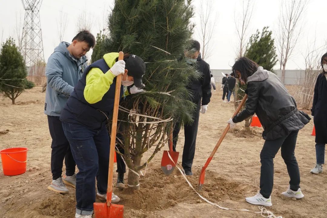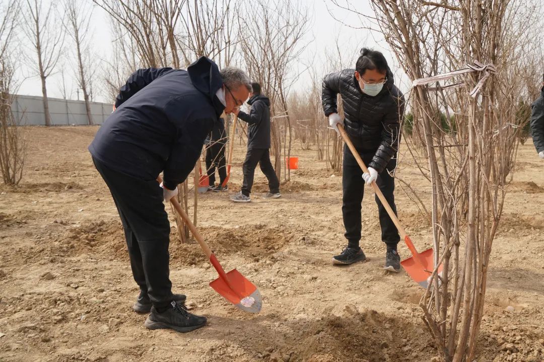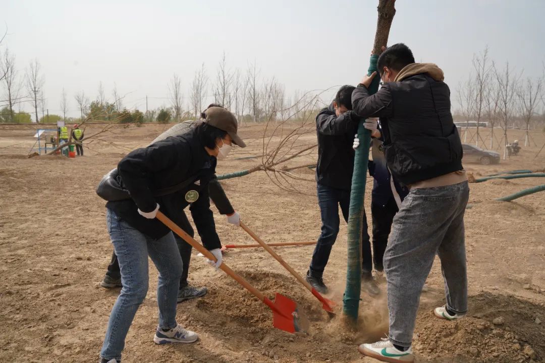 植樹活動(dòng)中,大家在工作人員的指引下,密切合作、分工配合,在樹木種植范圍內(nèi),深挖基礎(chǔ),厚培春壤,種下數(shù)百棵樹苗,為泉城濟(jì)南增添新綠。