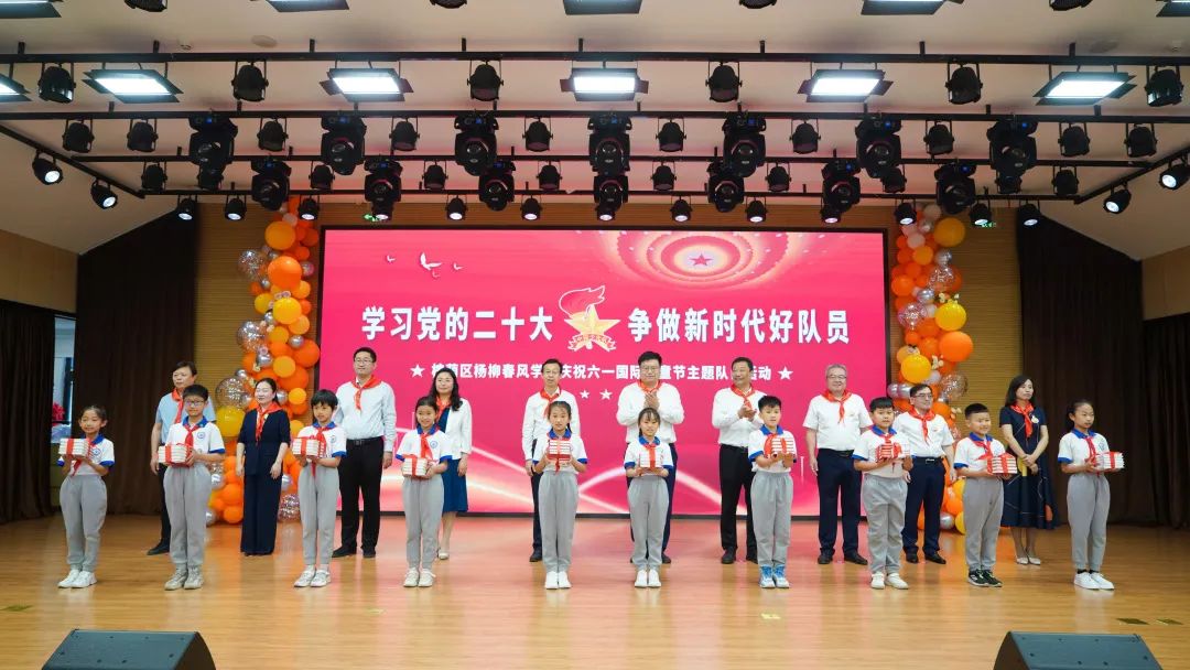 活動現(xiàn)場,與會嘉賓們?yōu)樾氯腙牭纳傧汝爢T們佩戴了紅領(lǐng)巾,為新建中隊授中隊旗,見證了黨、團、隊三旗傳遞,徐冬梅為孩子們送上了“六一”寄語,建設(shè)集團為孩子們贈送了入隊成長禮物。