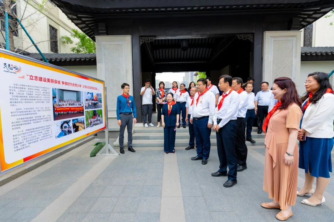 活動結(jié)束后,孫常建一行在楊柳春風(fēng)學(xué)校進行了實地參觀調(diào)研,了解了書香校園建設(shè)活動,并與孩子們進行了親切交流。孩子們熱情洋溢地介紹了“槐蔭少年說”黨團隊一體化品牌建設(shè)活動、“我是黃河岸邊好少年”黃河文化項目化學(xué)習(xí)特色課程、“我眼中的康養(yǎng)名城、活力槐蔭”畫展和手工展、“家住槐蔭‘育’見成長”教育品牌、學(xué)校校訓(xùn)和南北融合辦學(xué)理念等情況,并進行了古箏、寫生、經(jīng)典誦讀等美育教育特色活動表演,美術(shù)社團、舞蹈社團、合唱團、足球社團、啦啦隊的成員代表們進行了成果展示。