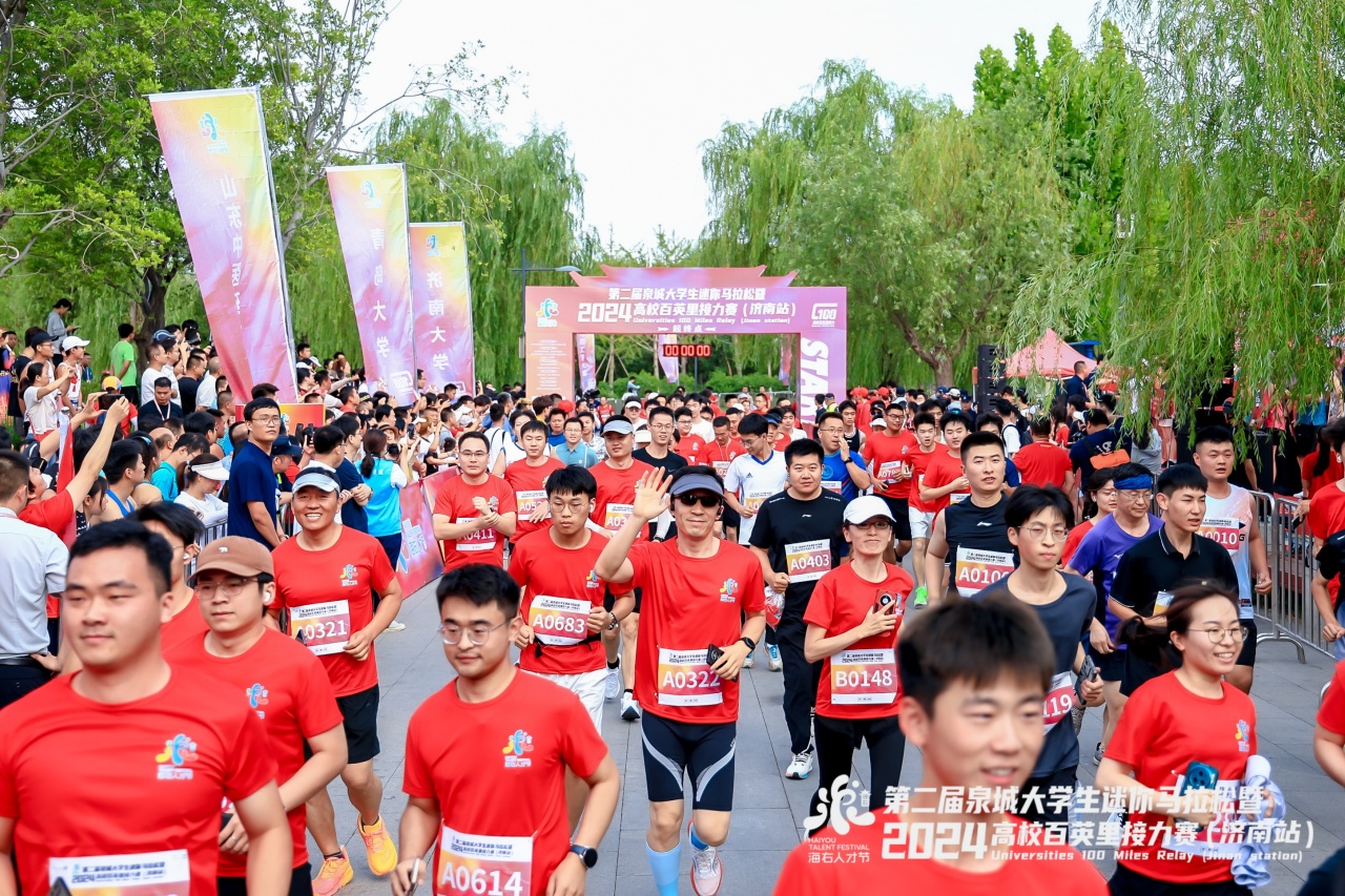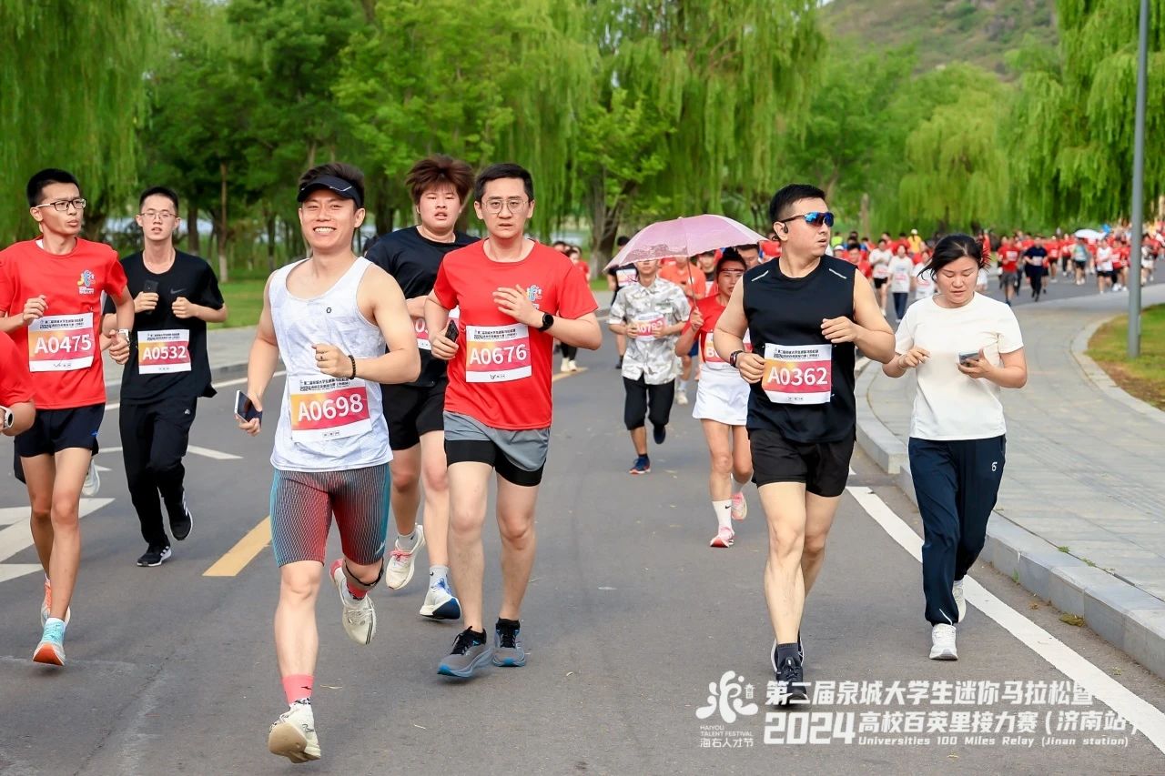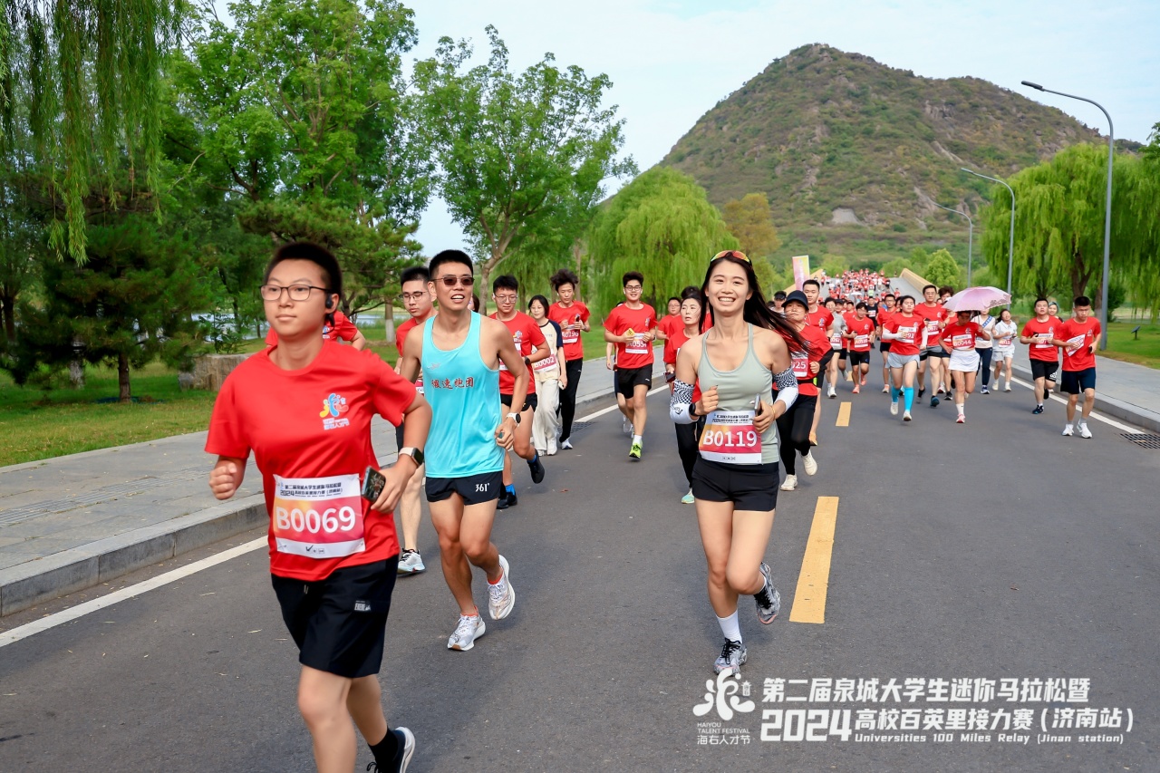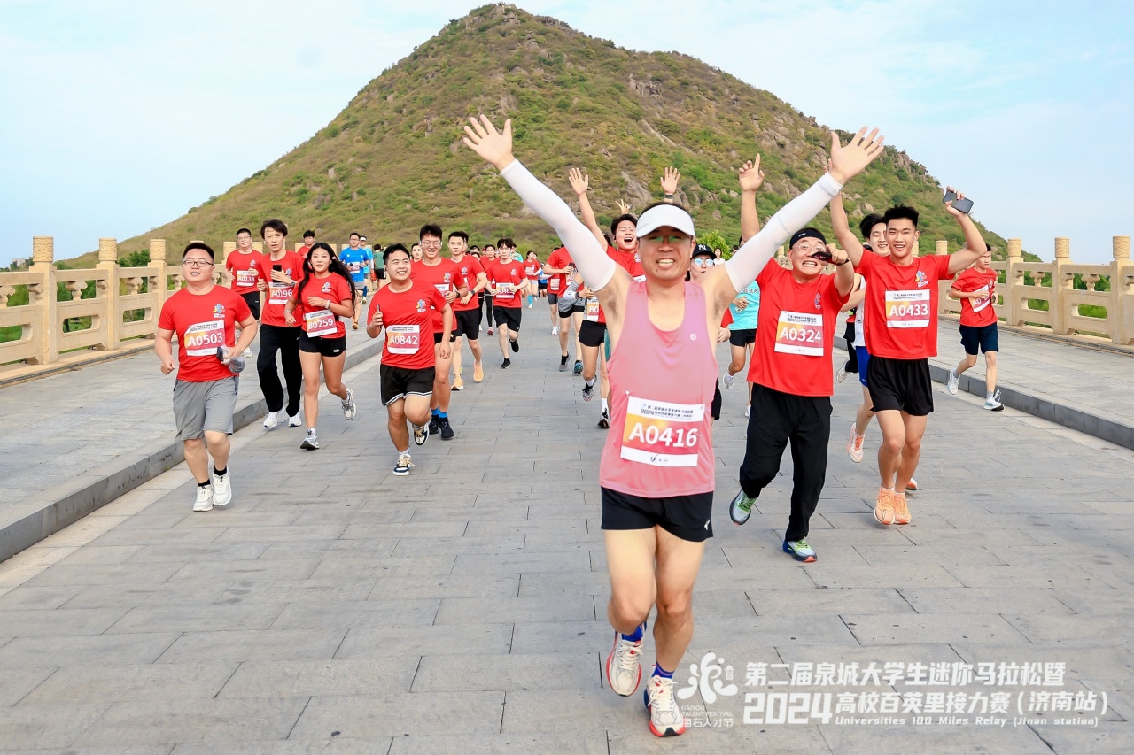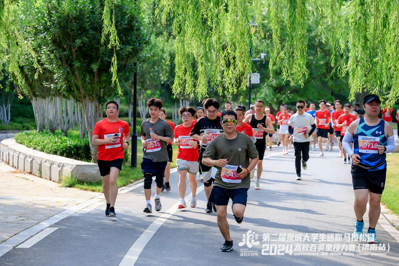 “泉”在濟(jì)南,逐夢(mèng)奔跑。6月16日,第二屆泉城大學(xué)生迷你馬拉松暨2024高校百英里接力賽(濟(jì)南站)在濟(jì)南華山湖景區(qū)成功舉行,來自全國的43支高校隊(duì)伍、86組運(yùn)動(dòng)員參賽,5000余名大學(xué)生及校友會(huì)成員參加了迷你馬拉松。