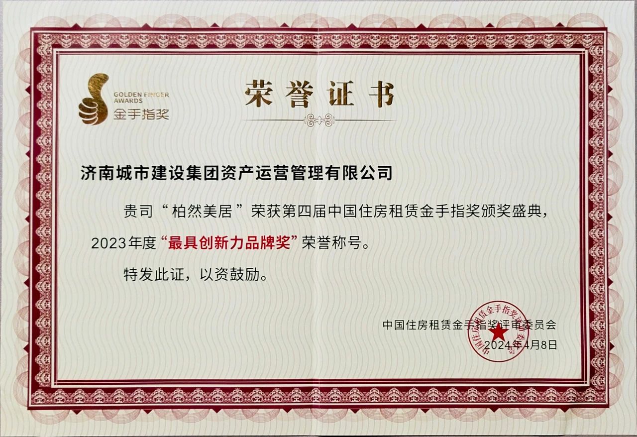 近日,在2024中國住房租賃企業(yè)家領(lǐng)袖峰會暨第四屆白云山論壇上,公布了2023年度“推動中國住房租賃發(fā)展進(jìn)程”系列榜單,濟南城市建設(shè)集團資產(chǎn)運營管理有限公司成功上榜2023年度“推動中國住房租賃發(fā)展進(jìn)程”百強企業(yè),公司運營的保障性租賃住房“柏然美居”品牌榮獲2023年度“最具創(chuàng)新力品牌獎”榮譽。