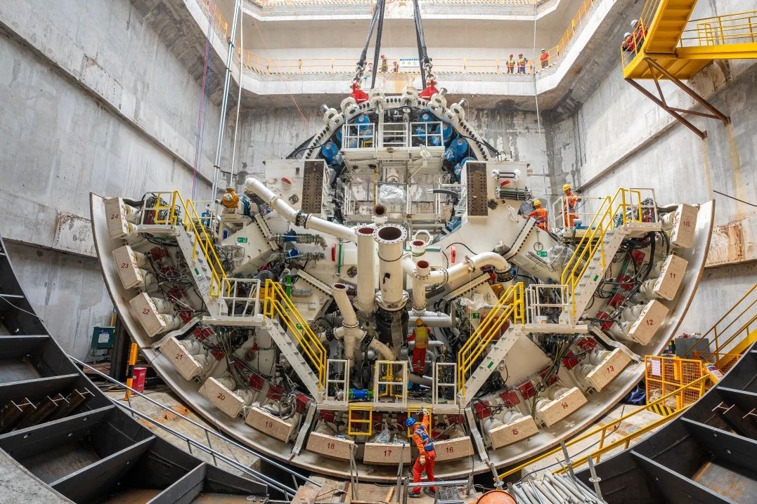 工程所采用的“山河號(hào)”盾構(gòu)機(jī),是世界在建最大直徑泥水平衡盾構(gòu)機(jī),最大開(kāi)挖直徑17.5米,總長(zhǎng)163米、重達(dá)5200噸、裝機(jī)總功率12580千瓦,裝配各類(lèi)刀具306把,其中57把可實(shí)現(xiàn)滾刀齒刀互換,刀盤(pán)開(kāi)口率53%,最大限度滿足掘進(jìn)所面對(duì)的復(fù)雜地層,盾構(gòu)機(jī)總裝達(dá)到世界先進(jìn)水平。