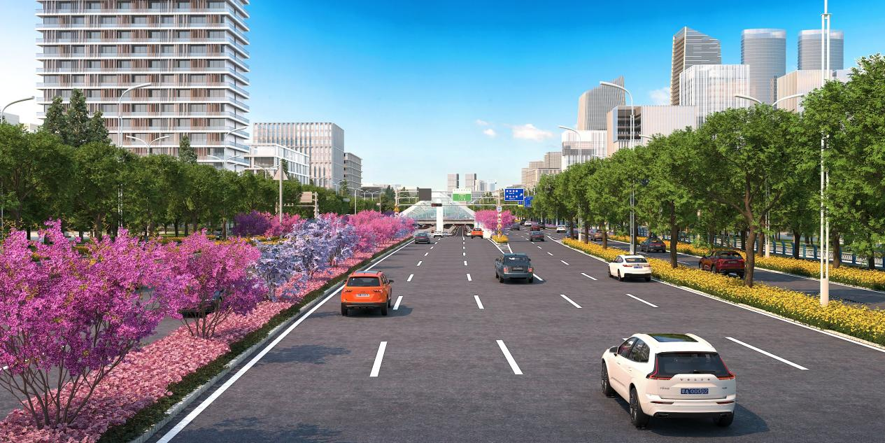其中,地下快速路約4.2公里(含地面輔路),地面快速路約4.0公里,設置2處不完全地下互通,1處分離立交,總占地面積1094.5畝。主路采用雙向六車道,設計速度80Km/h,輔路采用雙向六車道,設計速度50Km/h。