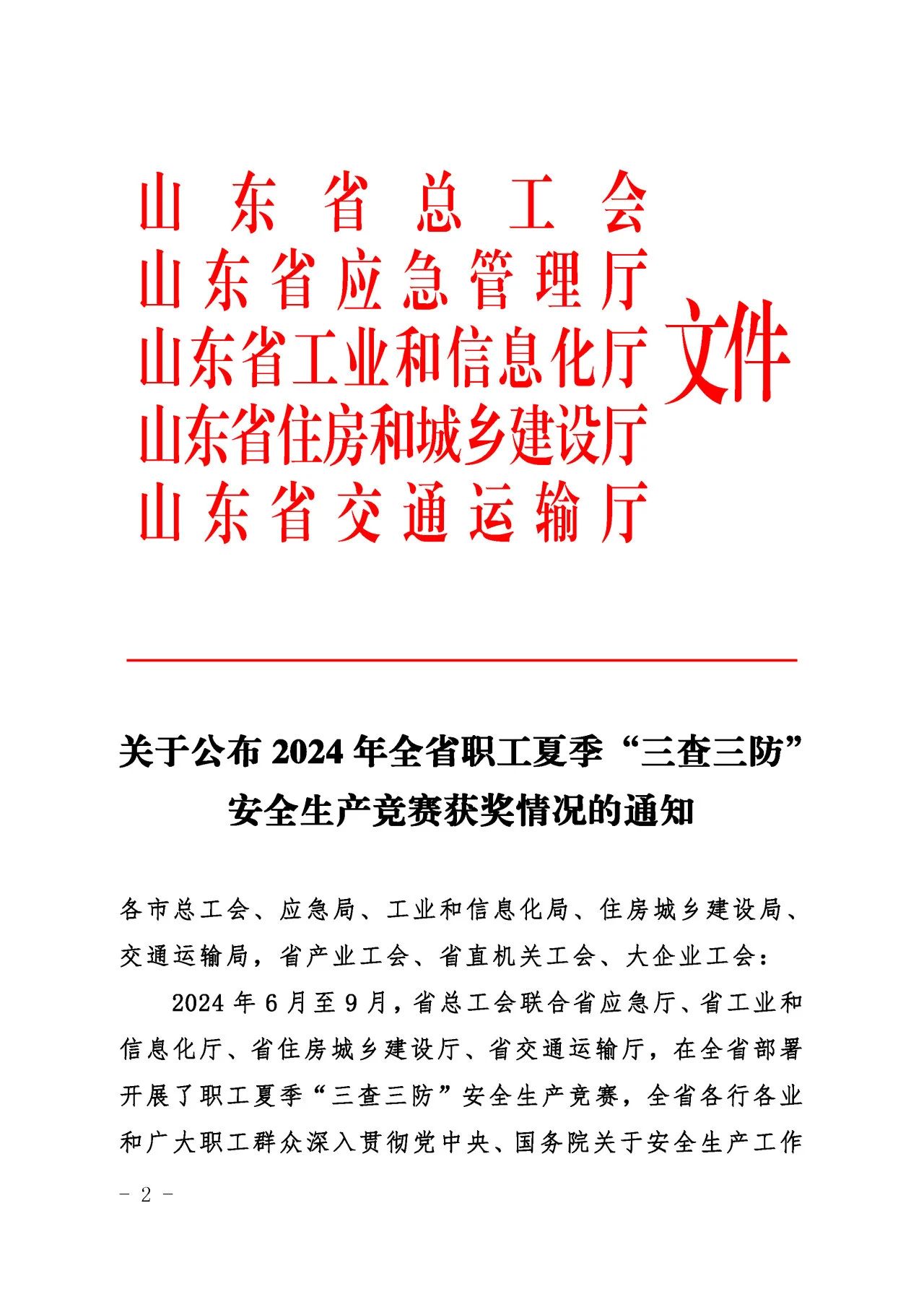 近日,山東省總工會(huì)、山東省應(yīng)急管理廳、山東省工業(yè)和信息化廳、山東省住房和城鄉(xiāng)建設(shè)廳、山東省交通運(yùn)輸廳聯(lián)合發(fā)布了《關(guān)于公布2024年全省職工夏季“三查三防”安全生產(chǎn)競(jìng)賽獲獎(jiǎng)情況的通知》,濟(jì)南城市建設(shè)集團(tuán)質(zhì)量安全部積極響應(yīng)上級(jí)主管部門(mén)的號(hào)召,按照集團(tuán)黨委的科學(xué)部署,全面而深入地開(kāi)展了各項(xiàng)安全專題活動(dòng),榮獲“三查三防”安全生產(chǎn)競(jìng)賽優(yōu)勝班組榮譽(yù)稱號(hào)。