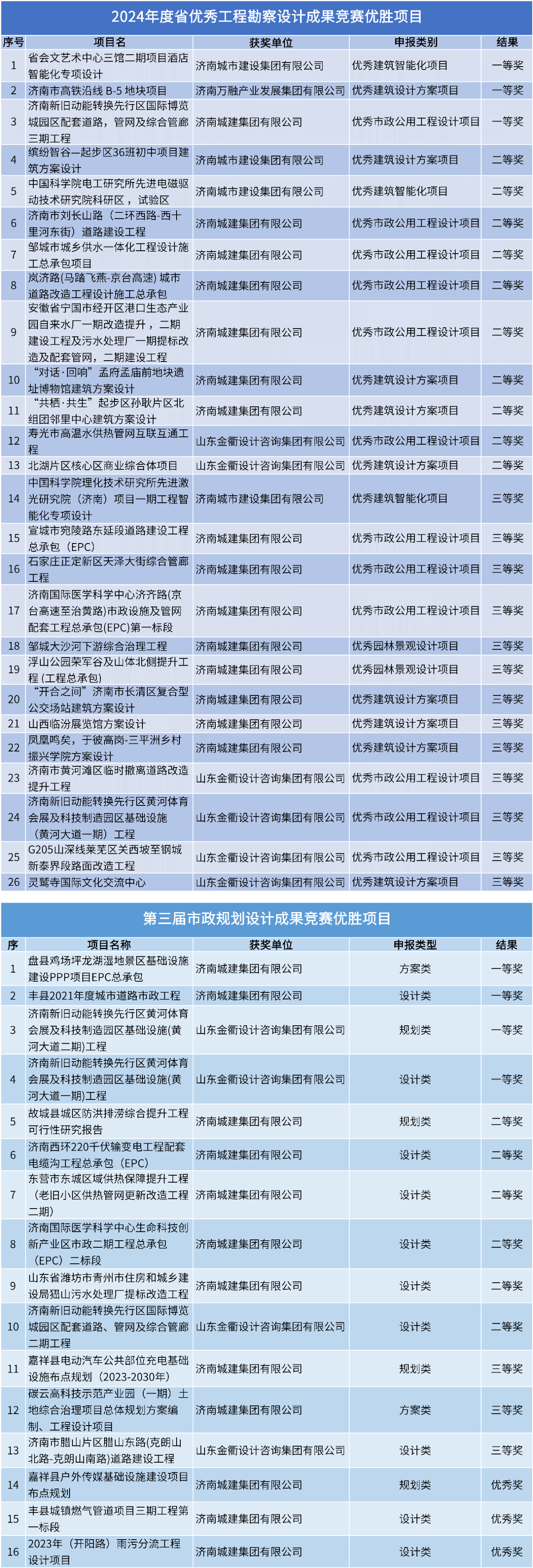近日,建設(shè)集團(tuán)及其所屬濟(jì)南萬(wàn)融產(chǎn)業(yè)發(fā)展集團(tuán)有限公司、濟(jì)南城建集團(tuán)有限公司、山東金衢設(shè)計(jì)咨詢集團(tuán)有限公司在2024年度優(yōu)秀工程勘察設(shè)計(jì)成果競(jìng)賽和第三屆市政規(guī)劃設(shè)計(jì)成果競(jìng)賽兩項(xiàng)省級(jí)賽事中斬獲佳績(jī)。
