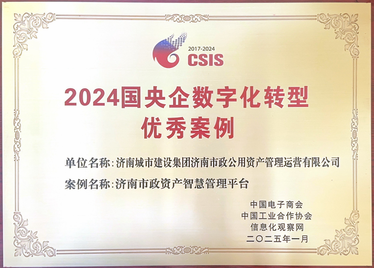近日,2024電子信息產(chǎn)業(yè)創(chuàng)新論壇暨第八屆軟件和信息服務(wù)業(yè)年度成果發(fā)布會(huì)在北京召開,會(huì)議公布了電子信息領(lǐng)域內(nèi)的典范企業(yè)、領(lǐng)軍人物、優(yōu)秀產(chǎn)品和樣板案例等,建設(shè)集團(tuán)所屬濟(jì)南市政公用資產(chǎn)管理運(yùn)營(yíng)有限公司呈報(bào)的“濟(jì)南市政資產(chǎn)智慧管理平臺(tái)”榮獲“2024國(guó)央企數(shù)字化轉(zhuǎn)型優(yōu)秀案例”。