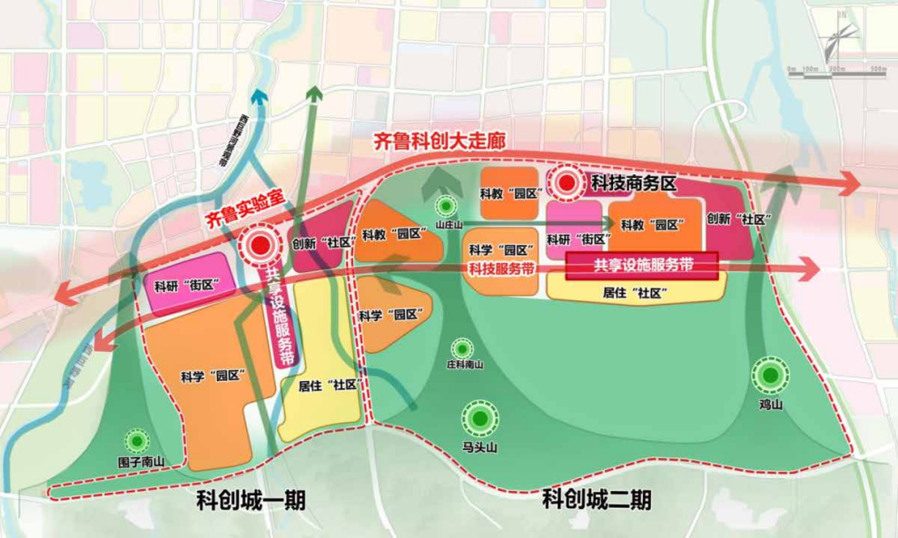 中科院科創(chuàng)城位于濟(jì)南市規(guī)劃的齊魯科創(chuàng)大走廊,是未來產(chǎn)業(yè)創(chuàng)新圈的重要組成部分,與產(chǎn)研院創(chuàng)新圈、超算中心創(chuàng)新圈、山東大學(xué)創(chuàng)新圈共同構(gòu)建“基礎(chǔ)創(chuàng)新+技術(shù)創(chuàng)新+轉(zhuǎn)化應(yīng)用”的創(chuàng)新生態(tài)鏈。其中,一期重點(diǎn)布局重大科技基礎(chǔ)設(shè)施、前沿交叉研究平臺及國家級、省級實(shí)驗(yàn)室;二期則突出科技賦能轉(zhuǎn)化,加強(qiáng)與大院大所合作,建設(shè)新型研發(fā)機(jī)構(gòu)和科創(chuàng)載體,助力濟(jì)南創(chuàng)建“綜合性國家科學(xué)中心”核心承載區(qū)。項(xiàng)目秉持“開放集聚、融合共享”的理念,統(tǒng)籌科研、生活和生態(tài)空間,形成“科創(chuàng)引領(lǐng)、組團(tuán)共融、生態(tài)共享”的總體結(jié)構(gòu),通過科學(xué)合理的功能分區(qū)和創(chuàng)新生態(tài)鏈的構(gòu)建,為濟(jì)南市的科技創(chuàng)新和產(chǎn)業(yè)升級提供強(qiáng)大支撐,成為推動區(qū)域高質(zhì)量發(fā)展的新引擎。