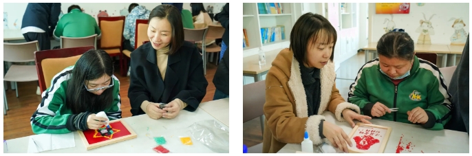活動現(xiàn)場,志愿者們首先參觀了驛站設(shè)施,通過與殘疾人交流,深入了解殘疾人群體需求。在隨后的互動環(huán)節(jié)中,志愿者們與殘疾人共同觀看雷鋒故事短片,進一步弘揚新時代雷鋒精神,同時與殘疾人朋友分組合作,以大米、紅豆等糧食為材料,共同創(chuàng)作“雷鋒主題創(chuàng)意畫”。志愿者們耐心傾聽、細致協(xié)助,以實際行動踐行“奉獻、友愛、互助、進步”的志愿精神。